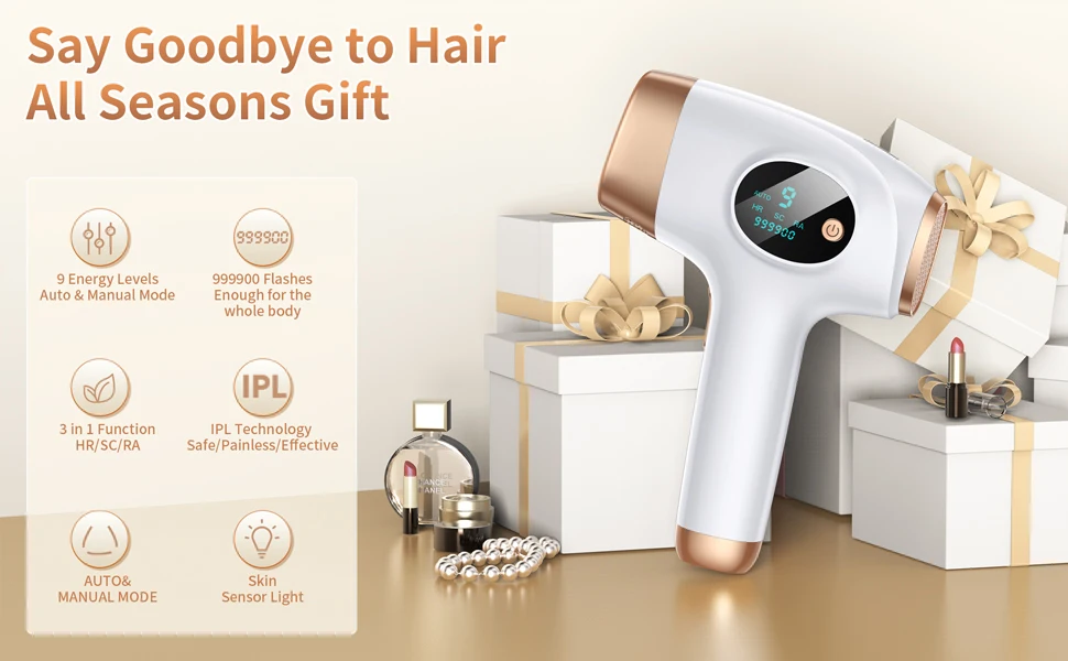IPL-Haarentfernungsgerät mit 999.999 Lichtimpulsen – 3-in-1 dauerhafter & schmerzfreier Epilierer für die Ganzkörperanwendung zu Hause – für Frauen & Männer